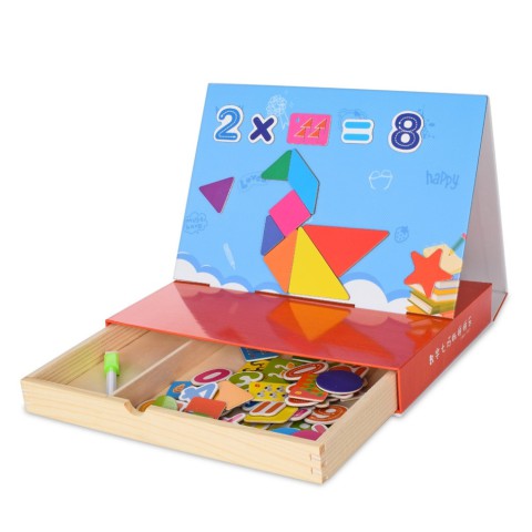 У комплект також входить стираючий маркер, яким можна малювати прямо на поверхні дощечки, а потім легко стирати написане — це додає грі ще більше можливостей для розвитку уяви й творчого мислення.