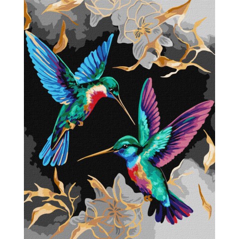 Картина за номерами "Танець колібрі" KHO6590 з фарбами металік extra 40х50см
