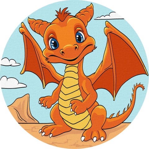 Набір для розпису по номерах 7+. "Помаранчевий дракончик", діаметр 19 см, КНО-R1051