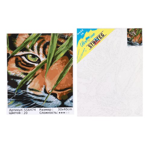 Набір для розпису по номерах Тигр у листі, Strateg, 30x40 см, SS-6474