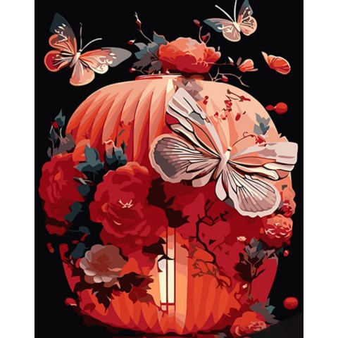 Набір для розпису по номерах Японський ліхтар у квітах, Strateg, на чорному фоні, 40x50 см, AH1009