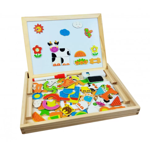 Рекомендована для дітей старше 3-х років, розвиваюча дерев'яна іграшка набір першокласника MD 2083A - це ідеальний подарунок для підростаючого, маленького розумника. У комплекті Ваш непосида знайде все необхідне для навчальних занять, включаючи двосторонню дошку, на якій можна малювати не тільки крейдою, а й фломастерами. Магнітно-маркерна сторона відмінно підходить для використання спеціальних наборів з вбудованими магнітами, тому дитина зможе вчити фігури, відтінки, вивчати основи математичного рахунку. Всі деталі укомплектовані зручною коробкою-трансформером, яка розроблена з екологічно чистого та безпечного материалу - натуральної деревини. Поверхня упаковки з дошкою і деталями надійно відполірована, що виключає ризик випадкового травмування під час гри. Компактні розміри дозволяють брати набір в дитячий сад або в подорож, щоб малюк провів час з максимальною користю для себе.