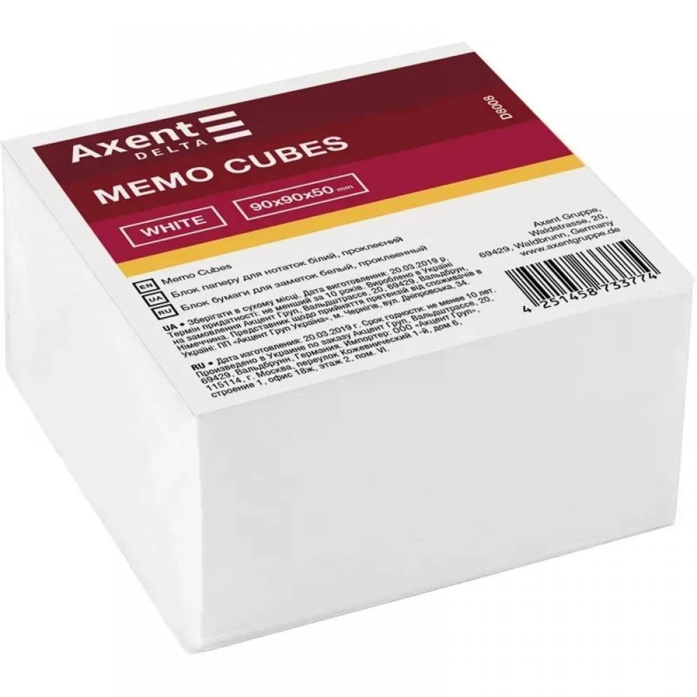 Блок білого паперу для нотаток Axent Delta D8008, 90х90х50 мм, проклеєний