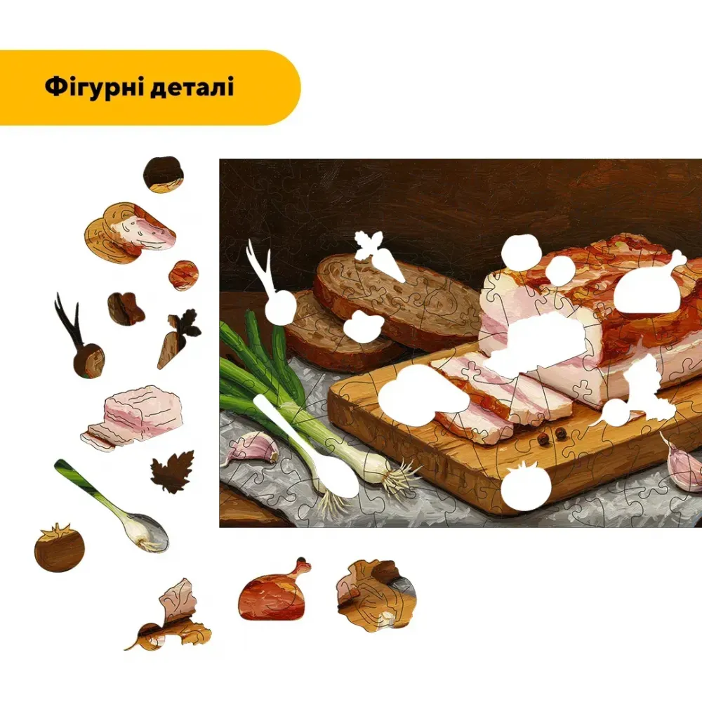 Поєднайте любов до української кухні та захоплююче складання пазлів! Унікальна серія дерев'яних фігурних пазлів «Страви української кухні» – це не просто головоломка, а справжня подорож у світ традиційних страв.