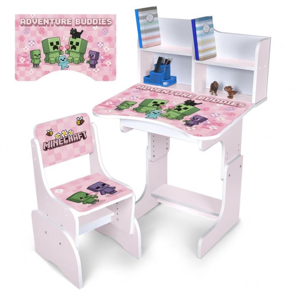 Парта N 2071 ідеальне рішення для маленьких школярів і дошкільнят. Комплект включає компактний дерев'яний стільчик з трьома рівнями регулювання висоти, що забезпечує правильну посадку дитини на різних етапах росту. На парті зображена українська абетка, що сприяє легкому вивченню букв під час занять.