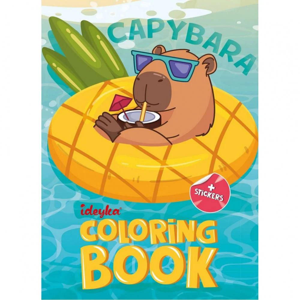 Книжка-розмальовка зі стікерами - Капібара на канікулах для вашої творчості. Зроблено в Україні.