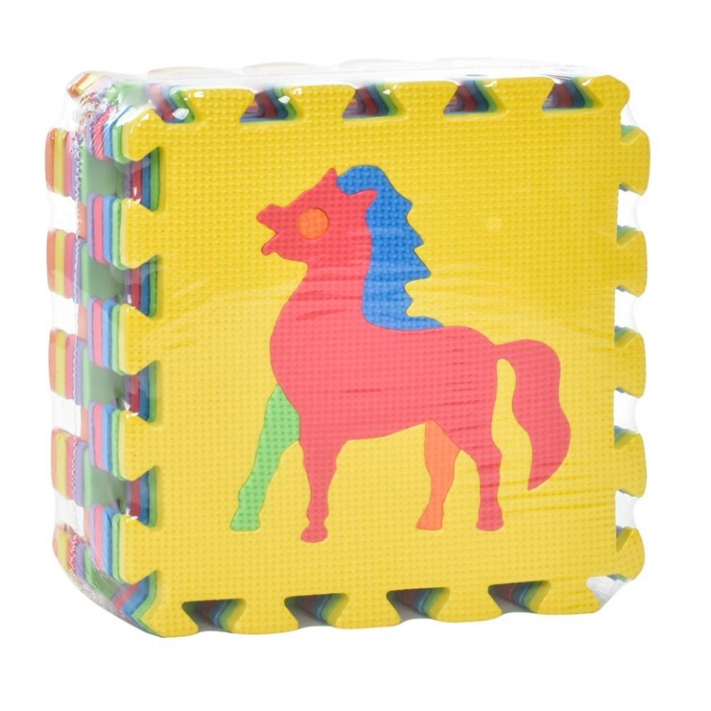Дитячий килимок-мозаїка "Тварини" - яскравий і багатофункціональний аксесуар, який стане чудовим місцем для ігор вашої дитини. Кожна з 9 деталей має м’яку текстуру і зручний розмір, що дозволяє малюку легко збирати мозаїку на підлозі, а батькам - організувати безпечну ігрову зону. Килимок сприяє розвитку дрібної моторики, логічного мислення та уяви, а також допомагає навчити дитину впізнавати різних тварин.