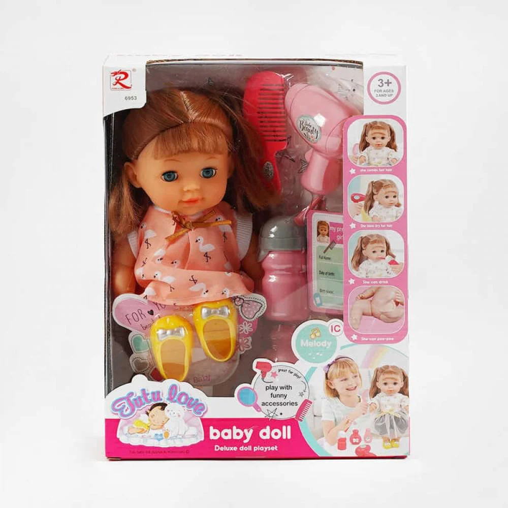 Кукла интерактивная 28 см пьет ходит в горшок закрывает глаза музыка 6953 Интерактивная кукла 6953 высотой 28 см — это реалистичный пупс, стимулирующий у ребенка чувство заботы и ответственности. Кукла оснащена несколькими жизненными функциями, делающими игру максимально приближенной к уходу за настоящим младенцем. Кукла может пить из бутылочки, а затем ходить на горшок, что помогает в обучении ребенка гигиеническим навыкам. Она умеет закрывать глаза, когда ее кладут спать, а также воспроизводить музыку или звуки (возможно, детский лепет или смех). Все эти интерактивные функции способствуют развитию мелкой моторики, эмпатии и социальных навыков через сюжетно-ролевые игры. Кукла 6953 изготовлена из качественных, безопасных материалов. Благодаря своим возможностям, эта кукла станет отличным подарком, который принесет много радости и обучающих моментов.