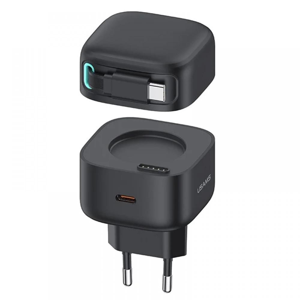 СЗУ Usams US-CC202 GaN With Type-C Magnetic Retractable Cable Module XMF Ser. 35W (2USB-C)