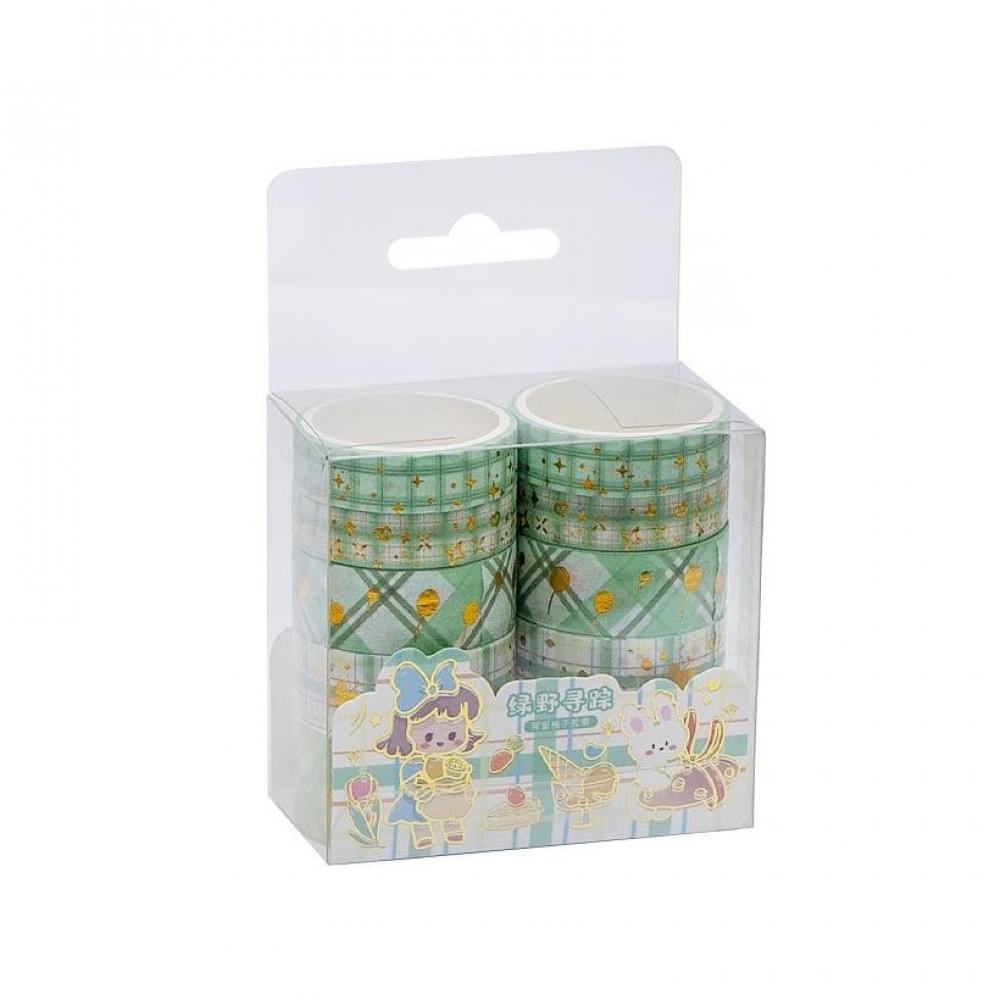 Набір декоративного скотчу містить 10 бобін різної ширини: 4 бобіни по 1 см, 4 бобіни по 1,5 см та 2 бобіни по 2 см. Довжина кожної бобіни складає 2 метри. Використовується для оформлення фотографій, декору книг, кімнатного дизайну та упаковки подарунків.
