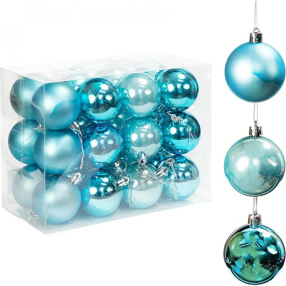 Набор шариков 24 шт диаметром 6 см голубой – яркие элементы для новогоднего декора елки. Прочный пластик, блестящее покрытие. Легкий крепеж. Создают праздничную атмосферу. Купите набор шариков 24 шт D6 см Голубой для волшебной отделки елки!