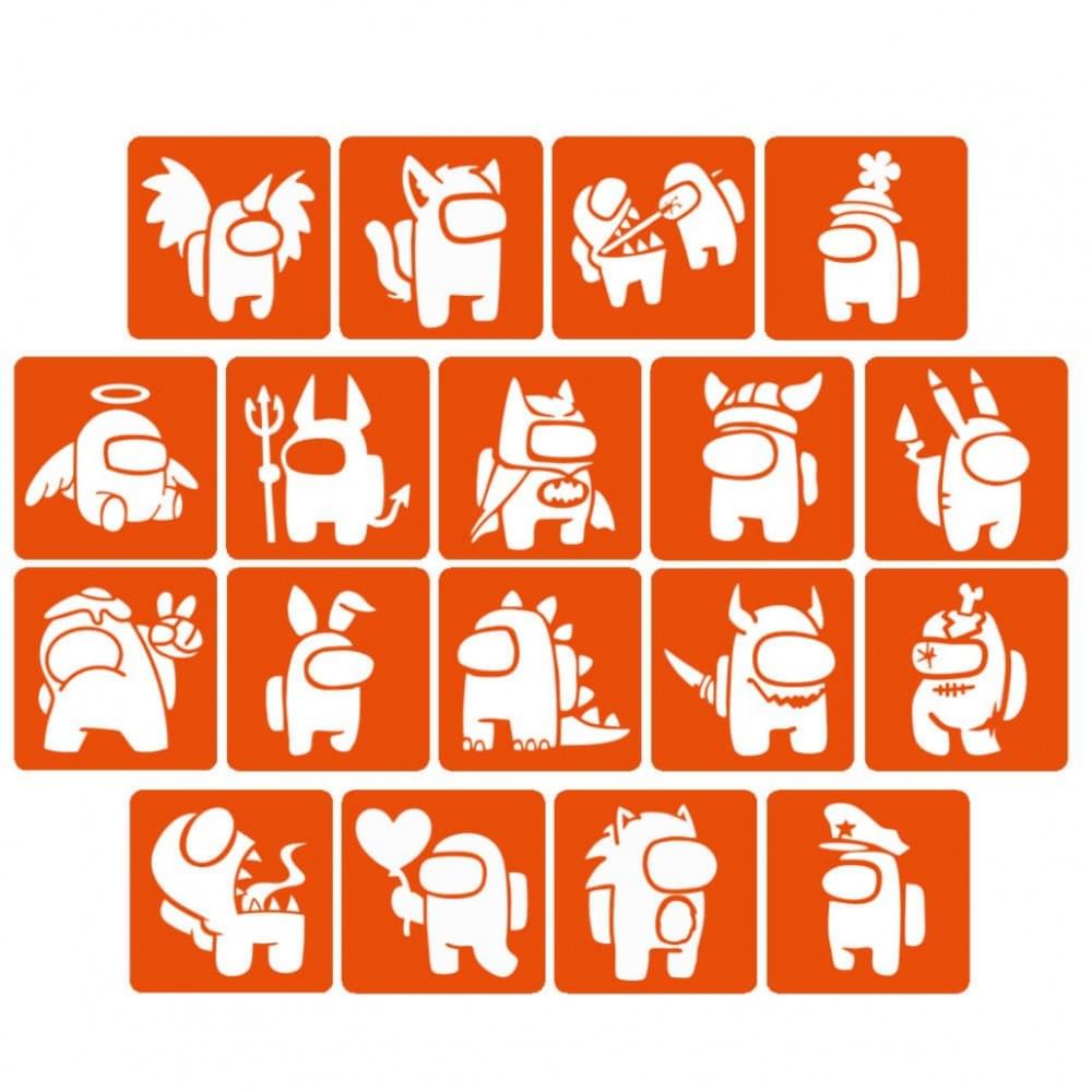 Набір трафаретів для створення біо-тату або гліттер-тату з популярними персонажами гри Among Us. Колекція підійде для дитячої та підліткової творчості, тематичних свят, вечірок і креативних занять.