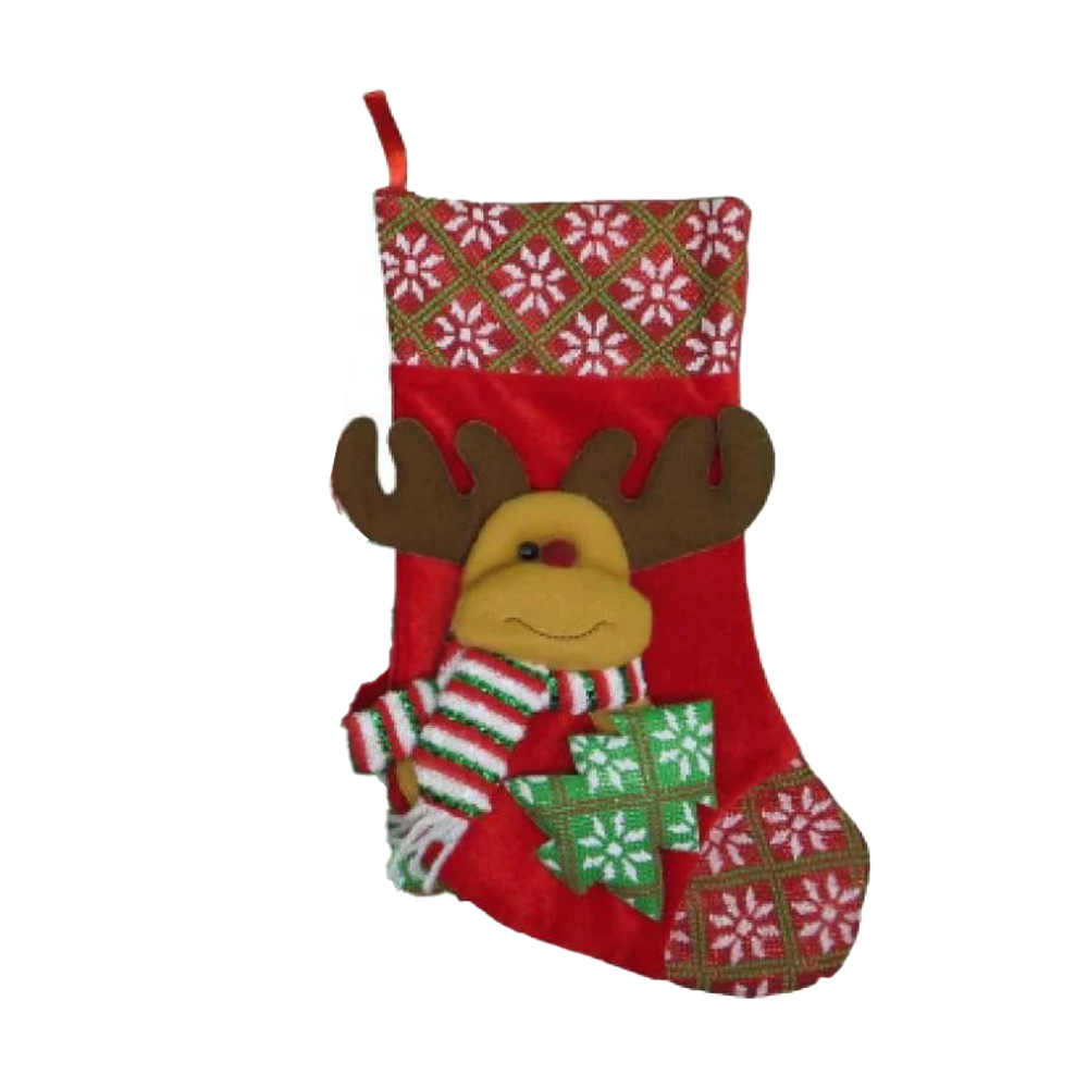 Носок д/подарк."Красный с аппликац.-Д.М., Снег.,Олень в шарфах" 33*20см 3в.(20*12)