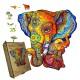Пазл "Сім'я Слоників" зберігає в собі образ ніжної родини слонів, кожен дерев'яний елемент якого додає унікальності цілій картині, відтворюючи теплу та сплетену любов'ю атмосферу сімейного кола.
