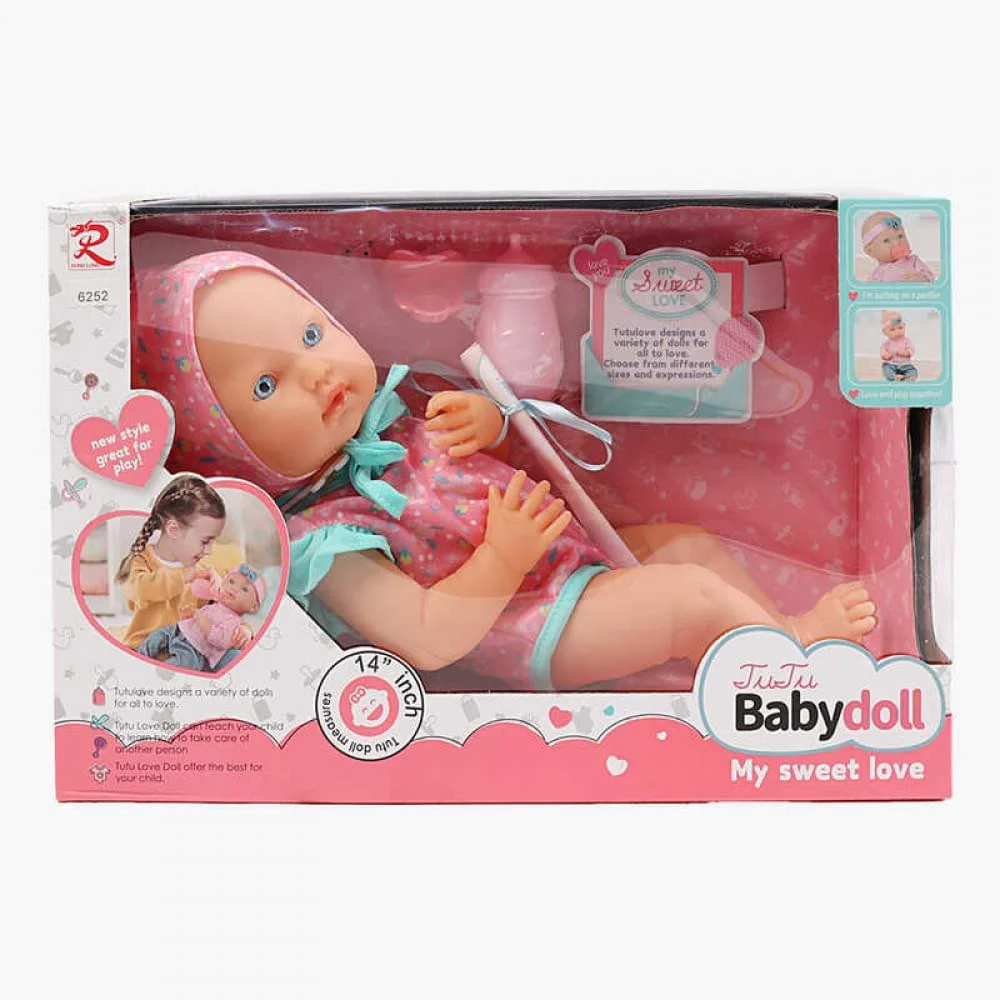 Пупс резиновый 33 см подвижные конечности голова съемная одежда пустышка бутылочка 6252
