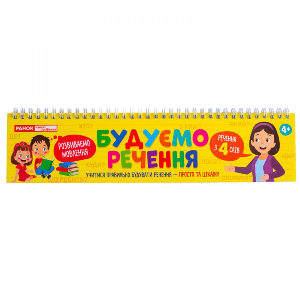 Роздавальний матеріал на пружині допоможе дитині навчитися будувати прості речення з 4 слів, узгоджуючи слова між собою. Мета гри — розвиток мовлення, мислення, граматичних навичок та зв’язного мовлення в ігровій формі.