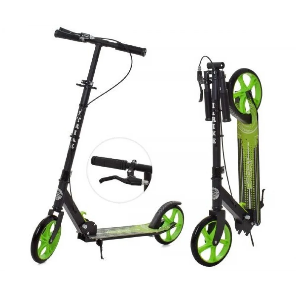 Cамокат двоколісний Itrike SR 2-051-1, з ручним гальмом, Чорний оснащений каркасом з алюмінію. Конструкція забезпечена двома колесами з литого поліуретану розміром 200 мм. Висоту керма можна регулювати в декількох положеннях.Рекомендований вік: від 7 роківКолеса PU, діаметр передніх 200 ммРегульована висота керма 90-106 смМатеріал алюміній + стальПідніжка 54 (34) -11смШирина керма 39смПідставкаРучне гальмоСкладаний механізм