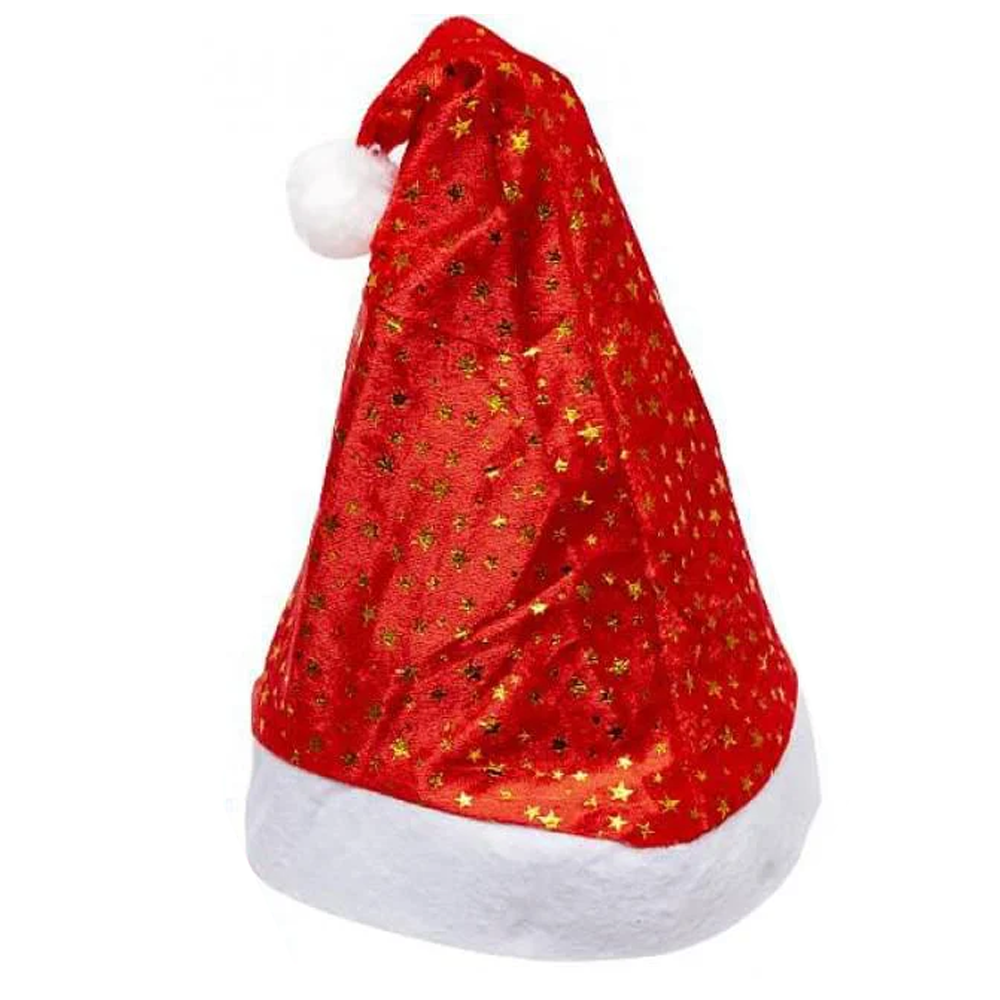 Классическая шапка Деда Мороза со звездочками 6241-2. Мягкая, теплая, универсальный размер. Обязателен аксессуар новогоднего костюма!