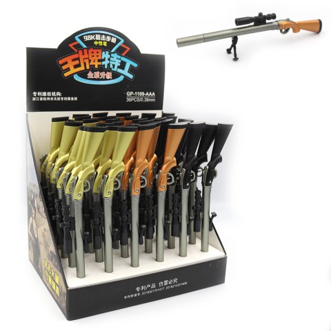 Ручка дитяча з іграшкою Снайперська гвинтівка, гелева, 0.38 мм, синя, 36 шт. (В асортименті)