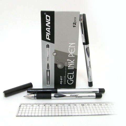 Ручка гелева Piano, 0.5 мм, чорна, грип, 12 шт., 817-PG_BK забезпечує комфортне письмо з гелевими чорнилами. Виготовлена з пластику, пишучий вузол 0.5 мм, з гумовим грипом. Сприяє чіткому письму та моториці. Ідеально для школярів. Створюйте акуратні записи! Купуйте на Demsky.com.ua.