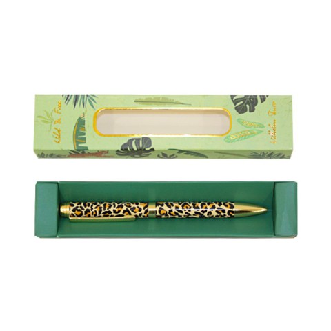 Ручка кулькова кнопкова, металева, із леопардовим принтом, WB167