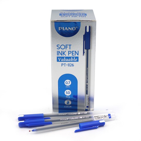 Ручка масляна Piano, 0.7 мм, синя, Soft Ink Pen, 50 шт., 1126-PT забезпечує плавне письмо з масляними чорнилами. Виготовлена з міцного пластику, пишучий вузол 0.7 мм. Сприяє акуратному письму. Ідеально для школи чи офісу. Створюйте чіткі записи! Купуйте на Demsky.com.ua.