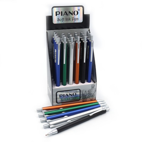 Ручка металева масляна Piano, 0.7 мм, синя, Soft Ink Pen, 24 шт.