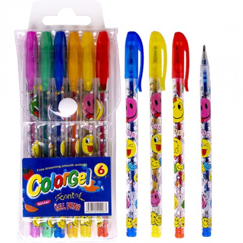 Набір ручок ароматизованих, гелевих, з блискітками, 6 кольорів 0,7мм.
