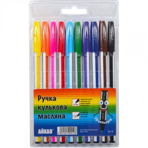 Набір ручок масляних "Айхао" 10 кольорів 563-10