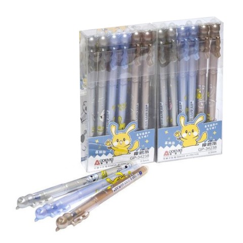 Ручка гелева "пише-стирає". Пластиковий кольоровий з малюнком корпус. Товщина 0,5 мм. Змінний стрижень. Колір синій.