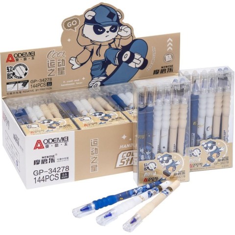 Ручка гелева "пише-стирає". Пластиковий кольоровий з малюнком корпус, гумовий грип. Товщина 0,5 мм. Змінний стрижень. Колір синій.