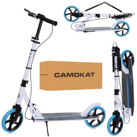 Самокат SR 2-049-1-WBLРама: алюміній+сталь; Колеса: 2 колеса, поліуретан;Діаметр коліс 200 мм;Підніжка 55/33-15 см;Висота керма 89-100 см;Упаковка: коробка