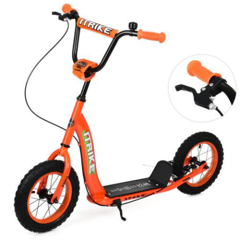 Двоколісний самокат iTrike SR 2043 (SR 2-043-1) надувні колеса може витримувати значні навантаження. Кататись на транспортному засобі зможуть навіть дорослі. У міру дорослішання дитини, кермо регулюється за висотою у кількох позиціях. Самокат оснащений надувними колесами, що відрізняються гарною прохідністю. Контролювати швидкість райдер зможе за допомогою ручного гальма на кермі. Для зручності паркування транспорту передбачена стійка підніжка стоянки. Особливості товару: Мінімальна висота керма від підлоги – 73 см, максимальна висота керма – 85 см; Розміри коліс: діаметр – 12 дюймів; Корпус; навантаження до 60 кг; Ручне гальмо; Платформа: довжина – 28 см; ширина - 11 см. Хар-ки Тип коліс Надувні Вага, кг Висота керма, см 73-85 Діаметр коліс, дюймів 12 Максимальне навантаження, кг 60 Матеріал Метал Рекомендований вік,