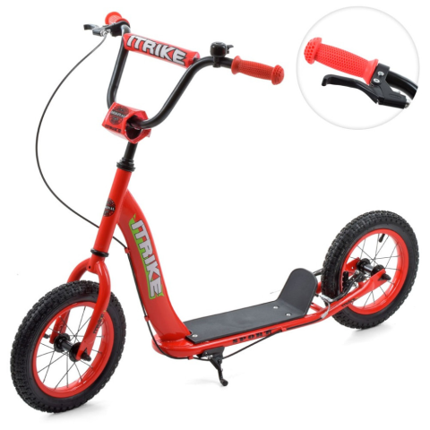 Двоколісний самокат iTrike SR 2043 (SR 2-043-1) надувні колеса може витримувати значні навантаження. Кататись на транспортному засобі зможуть навіть дорослі. У міру дорослішання дитини, кермо регулюється за висотою у кількох позиціях. Самокат оснащений надувними колесами, що відрізняються гарною прохідністю. Контролювати швидкість райдер зможе за допомогою ручного гальма на кермі. Для зручності паркування транспорту передбачена стійка підніжка стоянки. Особливості товару: Мінімальна висота керма від підлоги – 73 см, максимальна висота керма – 85 см; Розміри коліс: діаметр – 12 дюймів; Корпус; навантаження до 60 кг; Ручне гальмо; Платформа: довжина – 28 см; ширина - 11 см. Хар-ки Тип коліс Надувні Вага, кг Висота керма, см 73-85 Діаметр коліс, дюймів 12 Максимальне навантаження, кг 60 Матеріал Метал Рекомендований вік,
