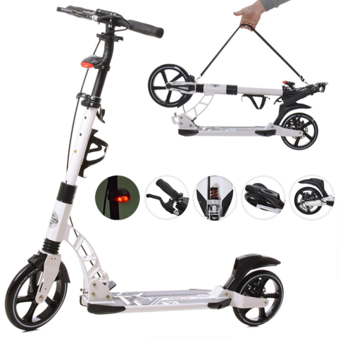 Самокат SR2-014-4-WРама: алюміній; Колеса: 2 колеса, поліуретан;Діаметр коліс 230-200 мм;Підніжка 49-13 см;Висота керма 96-105 см;Упаковка: коробка