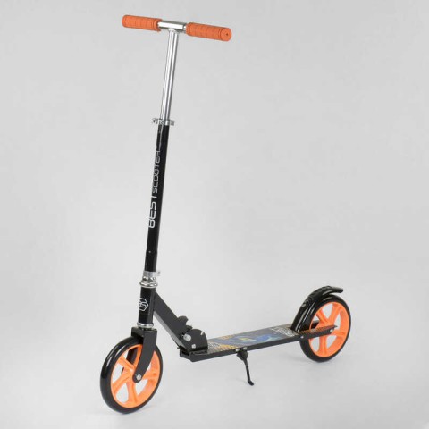 Самокат двоколісний, чорний, 42714 – Самокат двоколісний (42714, чорний) – прогулянковий самокат для дітей від 5 років. Алюмінієва рама, PU колеса (200 мм), ручне гальмо, гумові грипси, складна конструкція. Висота керма регулюється, дека з наждачкою. Сприяє розвитку координації. Замовляйте на Demsky.com.ua для веселого дозвілля!