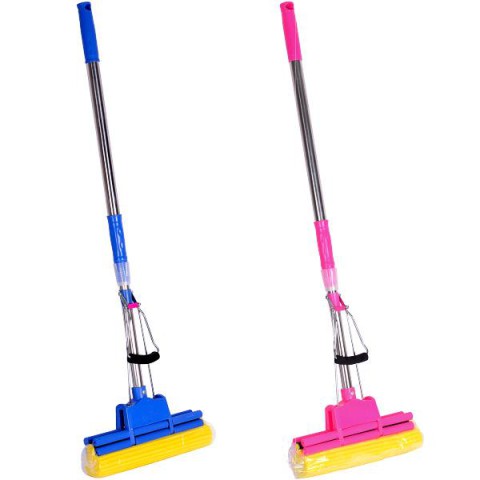 Швабра з губкою та подвійним віджимом – для кахлю та лінолеуму. Губка 27 см, ручка 106 см. Віджим ефективний, без крапель. Ідеальна для ванни, роблячи підлогу сухою.