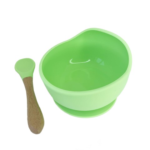 Силіконова тарілка на присосці з дерев'яною ложкою MGZ-0103(Green) 300 мл
