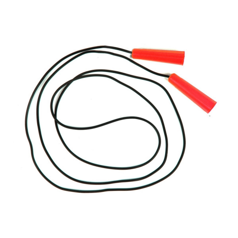 Скакалка - простий і доступний спортивний тренажер для дітей і дорослих. Стрибати на ній можна вдома, у спортзалі та на свіжому повітрі.Заняття зі скакалкою розвивають витривалість, координацію та спритність. Вправи зміцнюють серцево-судинну і дихальну систему, тренують м'язи ніг і ще десяток великих і дрібних м'язів.Крім спортивних вправ, скакалка підходить для різноманітних рухливих ігор із друзями.Гумовий джгут чорного кольору.Довжина скакалки 2,5 м.Ручки пластикові, різних кольорів.