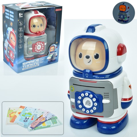 Скарбничка Космонавт, 24x16x12 см, звук, світло – Скарбничка Космонавт (24x16x12 см) – дитяча інтерактивна скарбничка з дизайном космонавта. Пластиковий корпус, звукові та світлові ефекти. Сприяє розвитку фінансової грамотності. Замовляйте на Demsky.com.ua для веселого дозвілля!