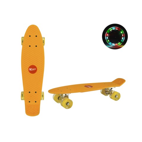 Пенні Борд. Легка дека зроблена з міцного формованого пластика. Довжина деки - 55 см., Ширина - 15 см. Принт завдано на деку з одного боку. Колеса PU, d = 6 см. Максимальне навантаження 70 кг. Колеса зі світлом