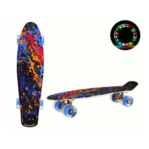 Пенні Борд. Легка дека зроблена з міцного формованого пластика. Довжина деки - 55 см., Ширина - 15 см. Принт завдано на деку з одного боку. Колеса PU, d = 6 см. Максимальне навантаження 70 кг. Колеса зі світлом