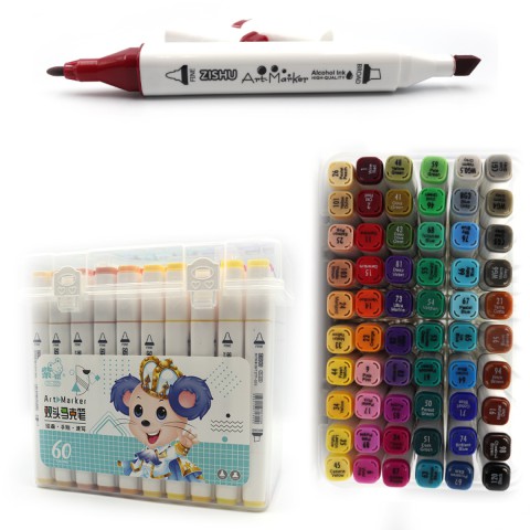 Набір скетчмаркерів Mouse, 60 шт., 60 кольорів, круглий/скошений наконечник, пластиковий бокс