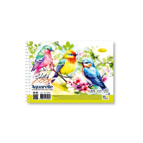 Скетчбук акварельний "Пташки" А5 АП-0204-3, 20 аркушів