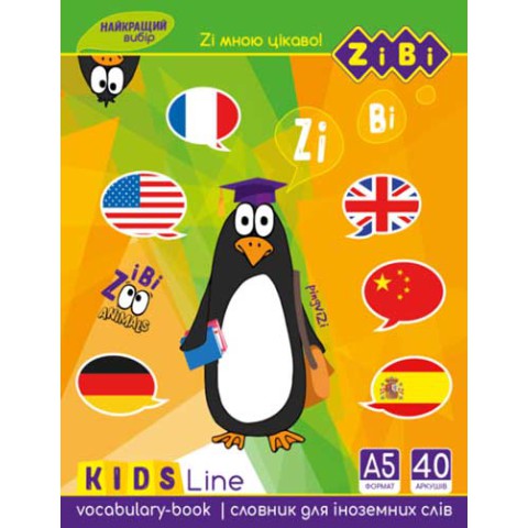 Словник для запису іноземних слів, А5+, 40 аркушів, м’яка обкладинка, скоба, УФ-лак, Kids Line