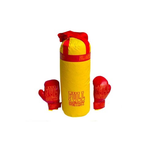Боксерський набір "Full" Великий, жовтого кольору. У комплект входить груша і дві боксерські рукавички, виготовлені із замінника шкіри, безпечного і екологічно чистого.