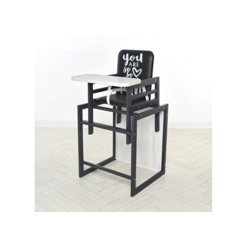 Стільчик для годування Graphite аляска, для годування, зі столиком, чорний+білий
