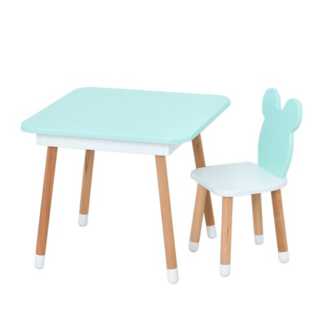 Столик зі стільцем "Ведмедик" 07-025B-BOX з ящиком, бірюзовий