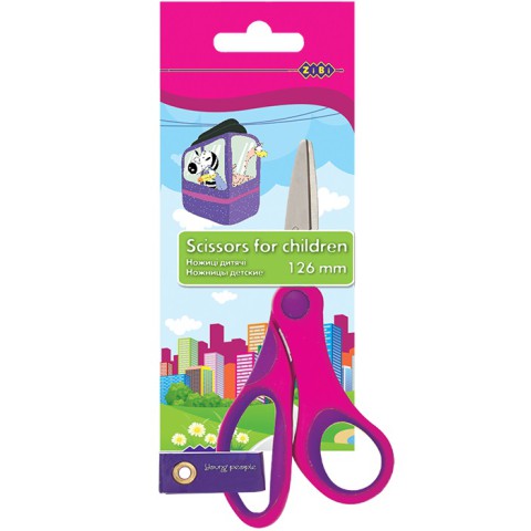 Ножиці дитячі, 126 мм, пластикові ручки із гумовими вставками, рожевий
