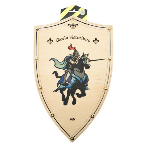Сувенірна модель дерев'яного щита з фанери 6 мм, з прямим друком Кінний Лицар. Використовується для гри під час дозвілля широкого кола осіб (від дитини до дорослого) як реквізит для творчих постановок у культурно-розважальних закладах, дитячих гуртках, для тематичного декорування приміщень.